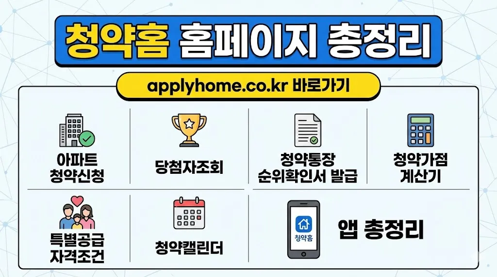 청약홈 홈페이지 applyhome.co.kr 바로가기 아파트 청약신청 당첨자조회 청약통장 순위확인서 발급 청약가점 계산기 특별공급 자격조건 청약캘린더 앱 총정리